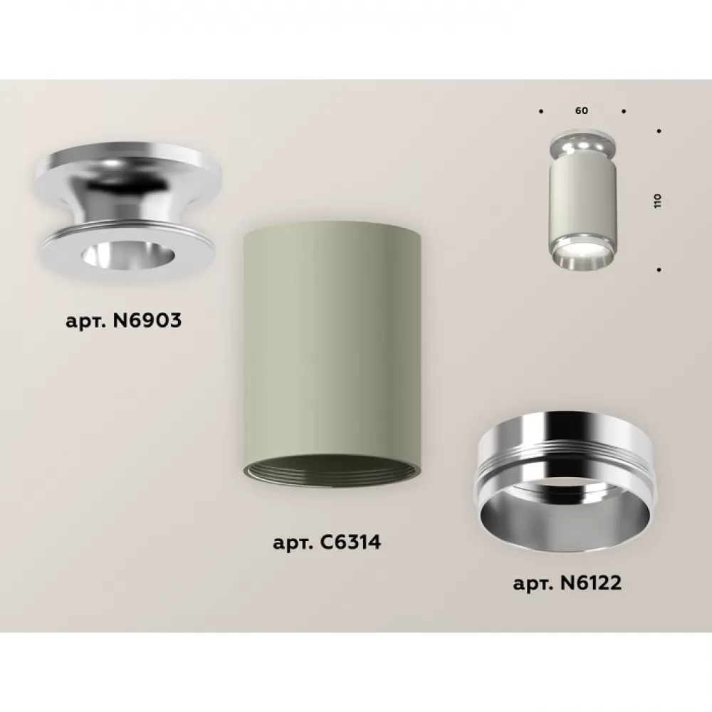 XS6314100 SGR/PSL серый песок/серебро полированное MR16 GU5.3 (N6903, C6314, N6122) Комплект накладного светильника