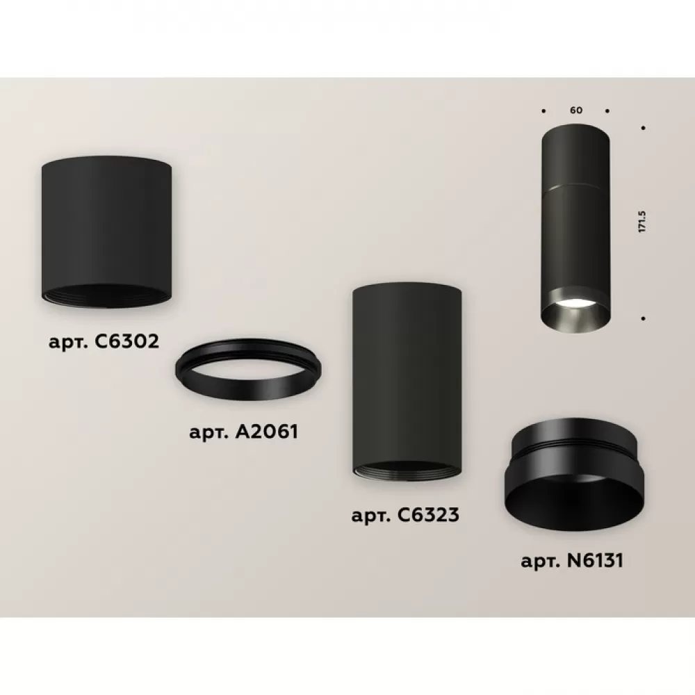 XS6323061 SBK/PBK черный песок/черный полированный MR16 GU5.3 (C6302, A2061, C6323, N6131) Комплект накладного светильника