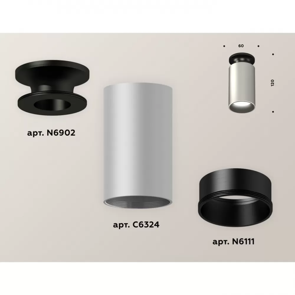 XS6324101 SSL/PBK/SBK серебро песок/черный полированный/черный песок MR16 GU5.3 Комплект накладного светильника