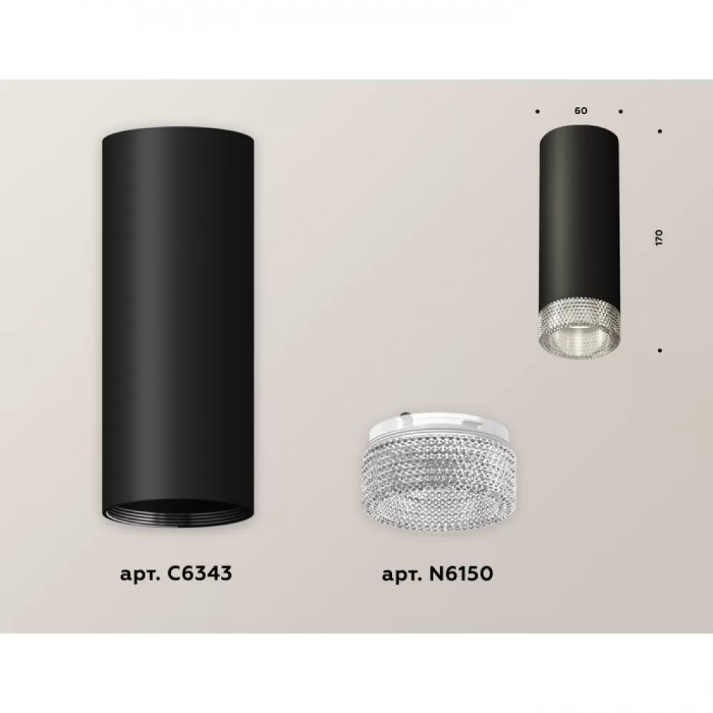 XS6343020 SBK/CL черный песок/прозрачный MR16 GU5.3 (C6343, N6150) Комплект накладного светильника с композитным хрусталем
