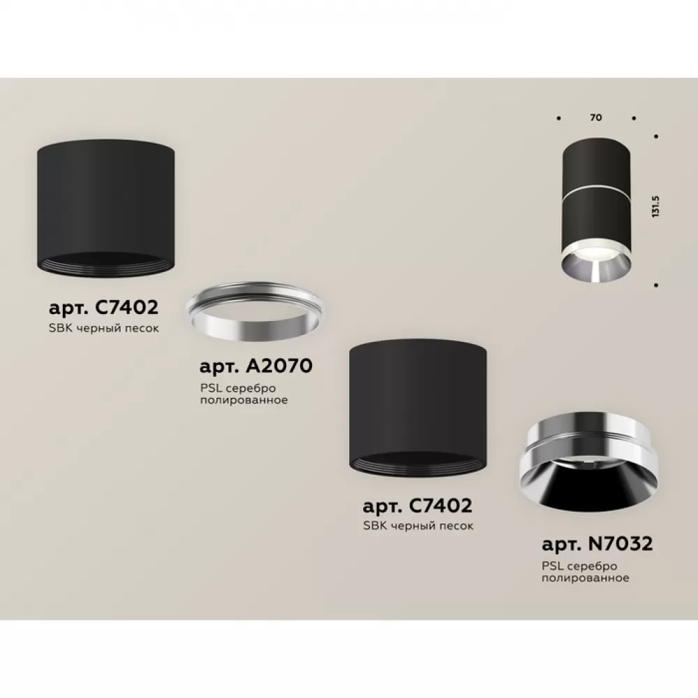 XS7402141 SBK/PSL черный песок/серебро полированное MR16 GU5.3 (C7402, A2070, C7402, N7031) Комплект накладного светильника