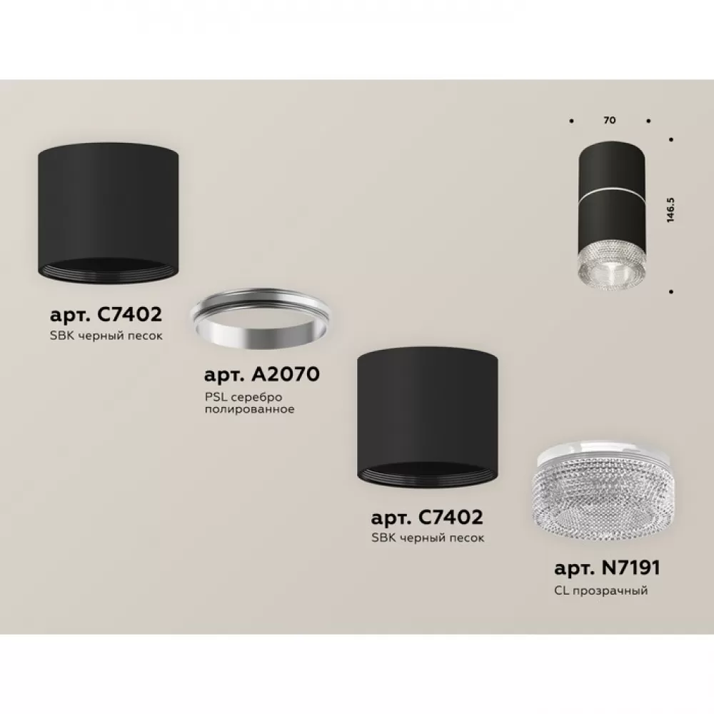 XS7402142 SBK/CL черный песок/прозрачный MR16 GU5.3 (C7402, A2070, C7402, N7191) Комплект накладного светильника с композитным хрусталем