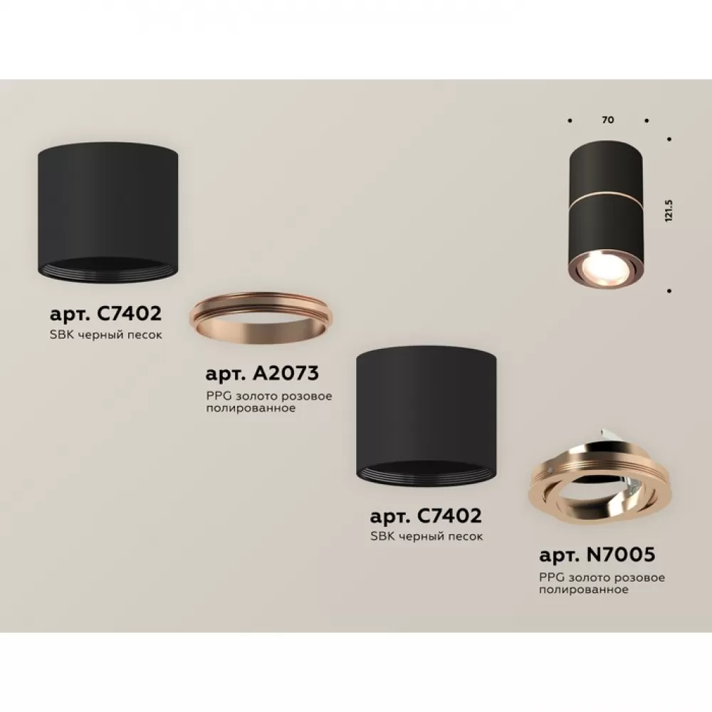 XS7402200 SBK/PPG черный песок/золото розовое полированное MR16 GU5.3 (C7402, A2073, C7402, N7005) Комплект накладного поворотного светильника