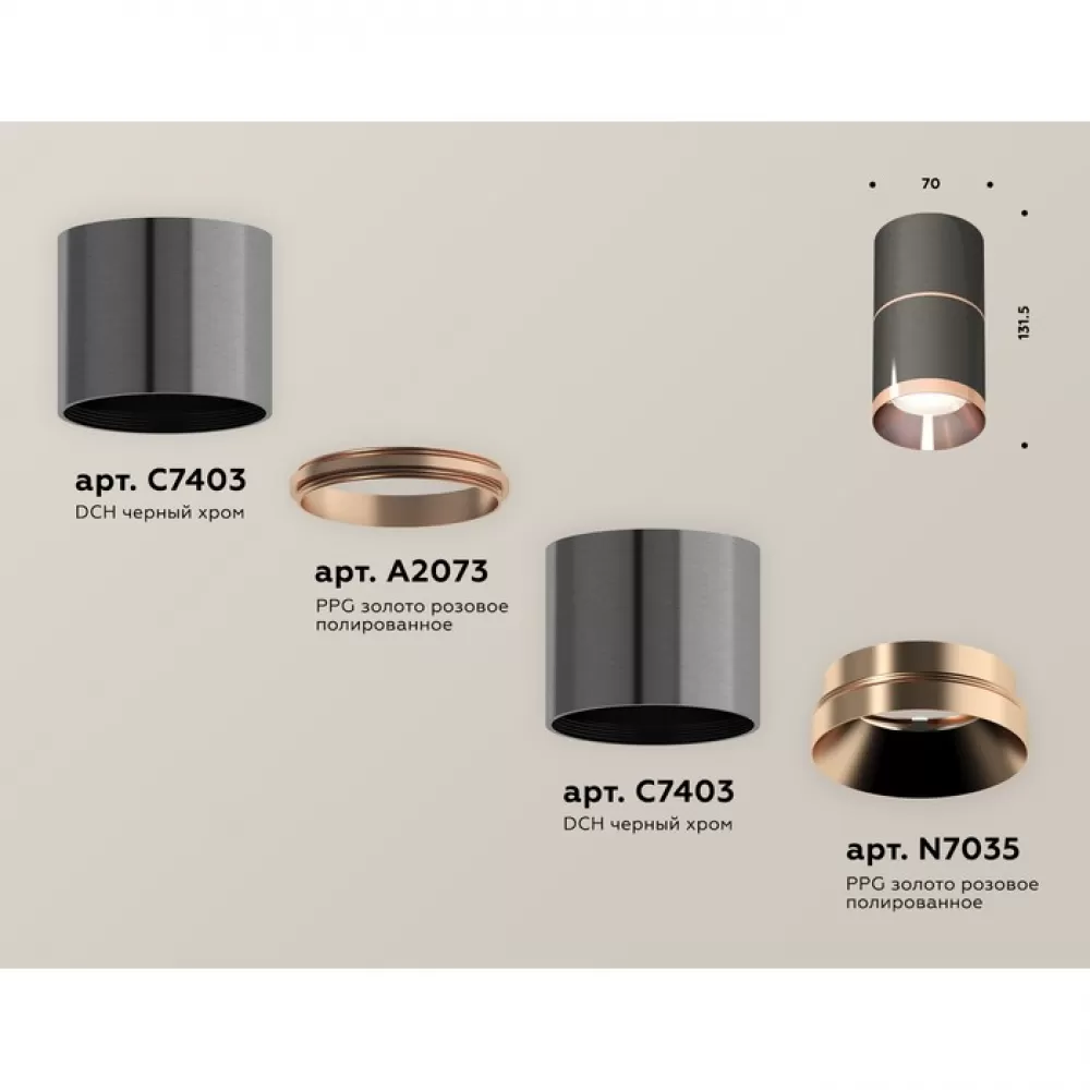 XS7403101 DCH/PPG черный хром/золото розовое полированное MR16 GU5.3 (C7403, A2073, C7403, N7035) Комплект накладного светильника