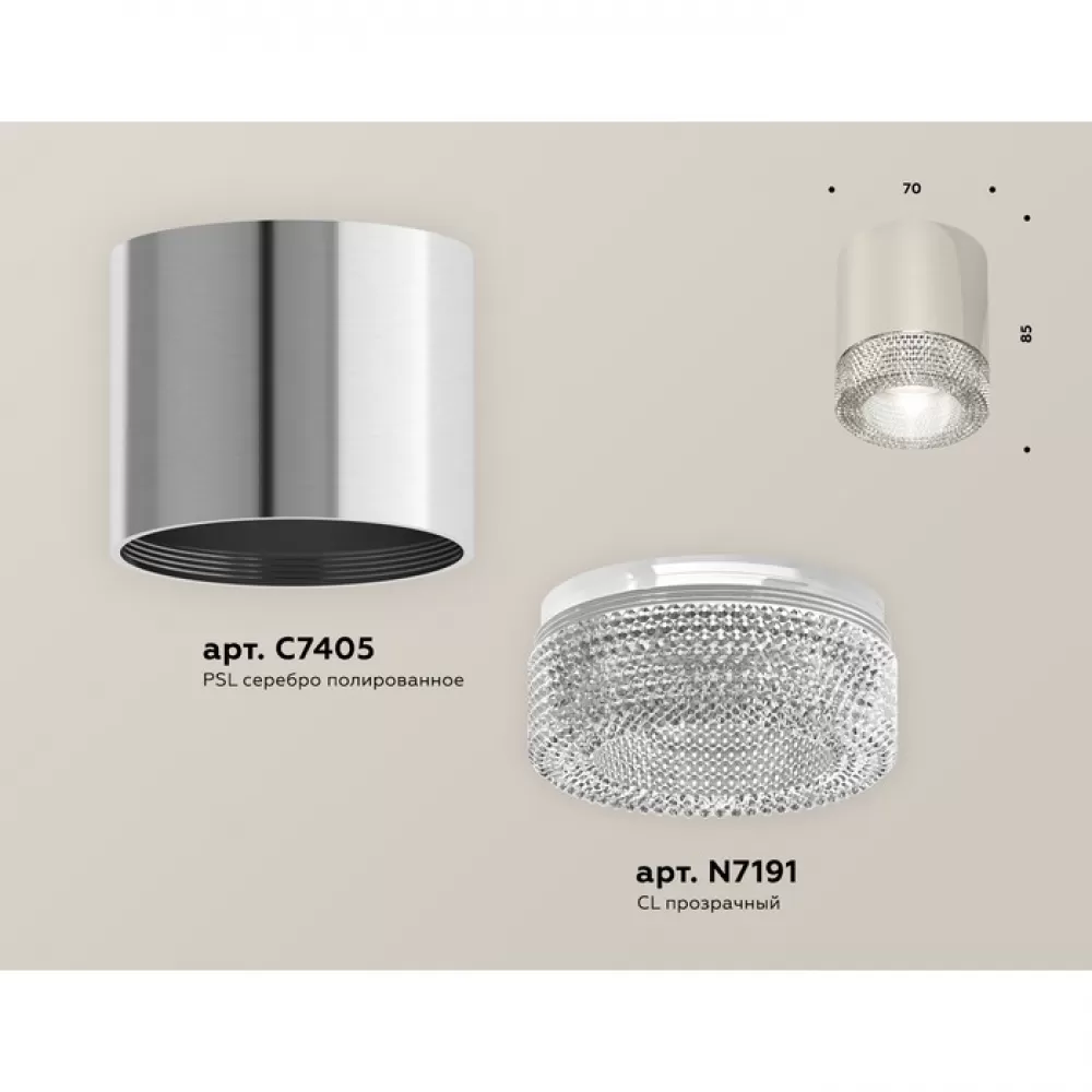 XS7405004 PSL/CL серебро полированное/прозрачный MR16 GU5.3 (C7405, N7191) Комплект накладного светильника с композитным хрусталем