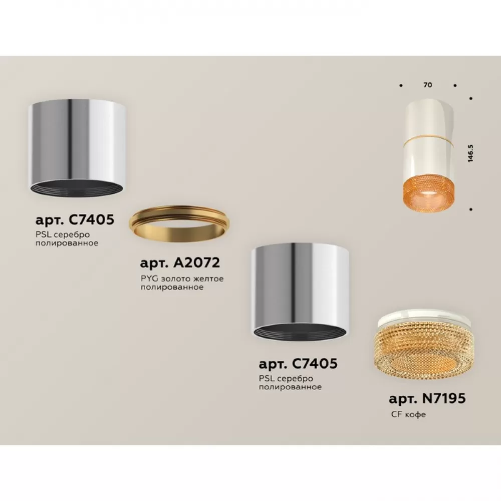 XS7405062 PSL/CF серебро полированное/кофе MR16 GU5.3 (C7405, A2072, C7405, N7195) Комплект накладного светильника с композитным хрусталем