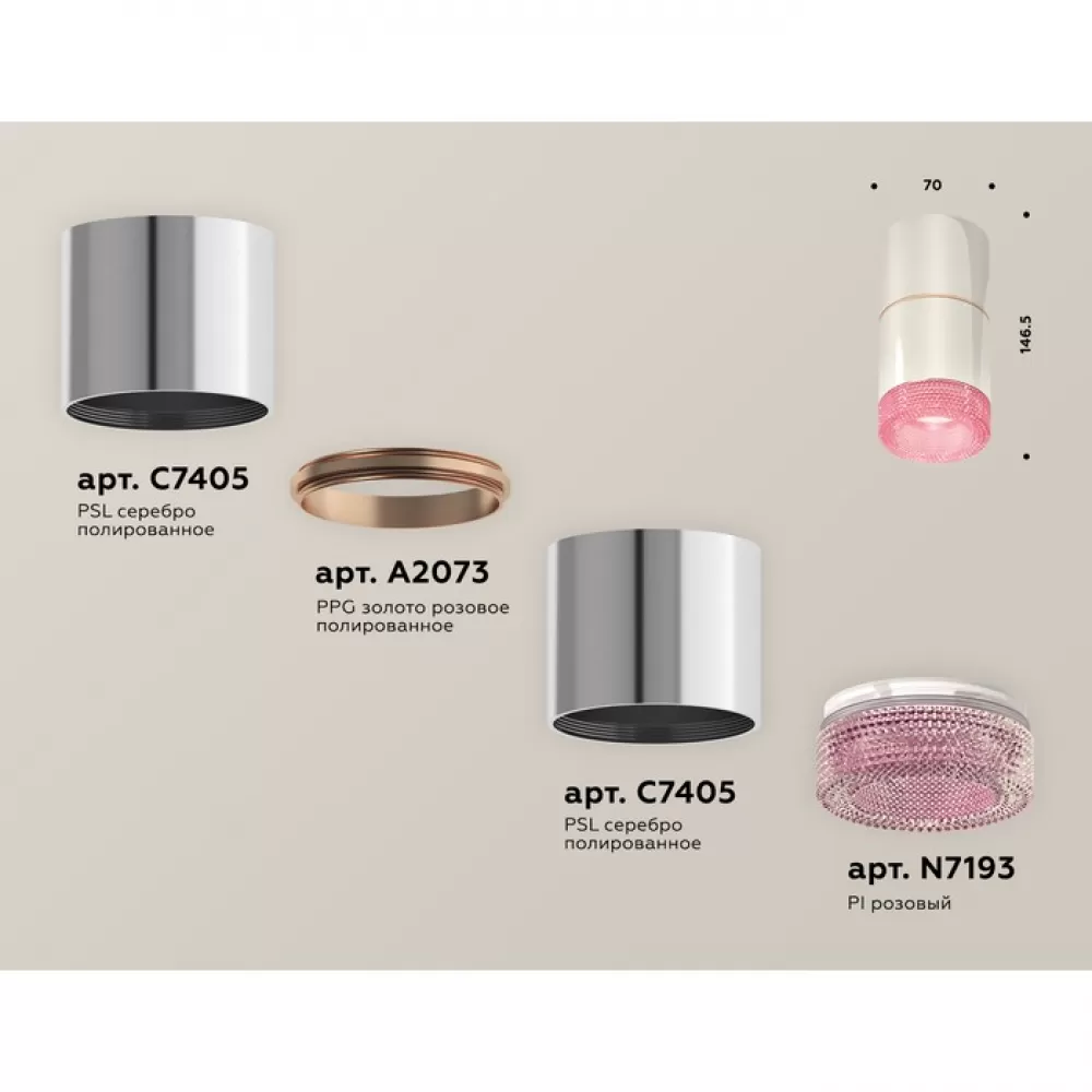 XS7405082 PSL/PI серебро полированное/розовый MR16 GU5.3 (C7405, A2073, C7405, N7193) Комплект накладного светильника с композитным хрусталем