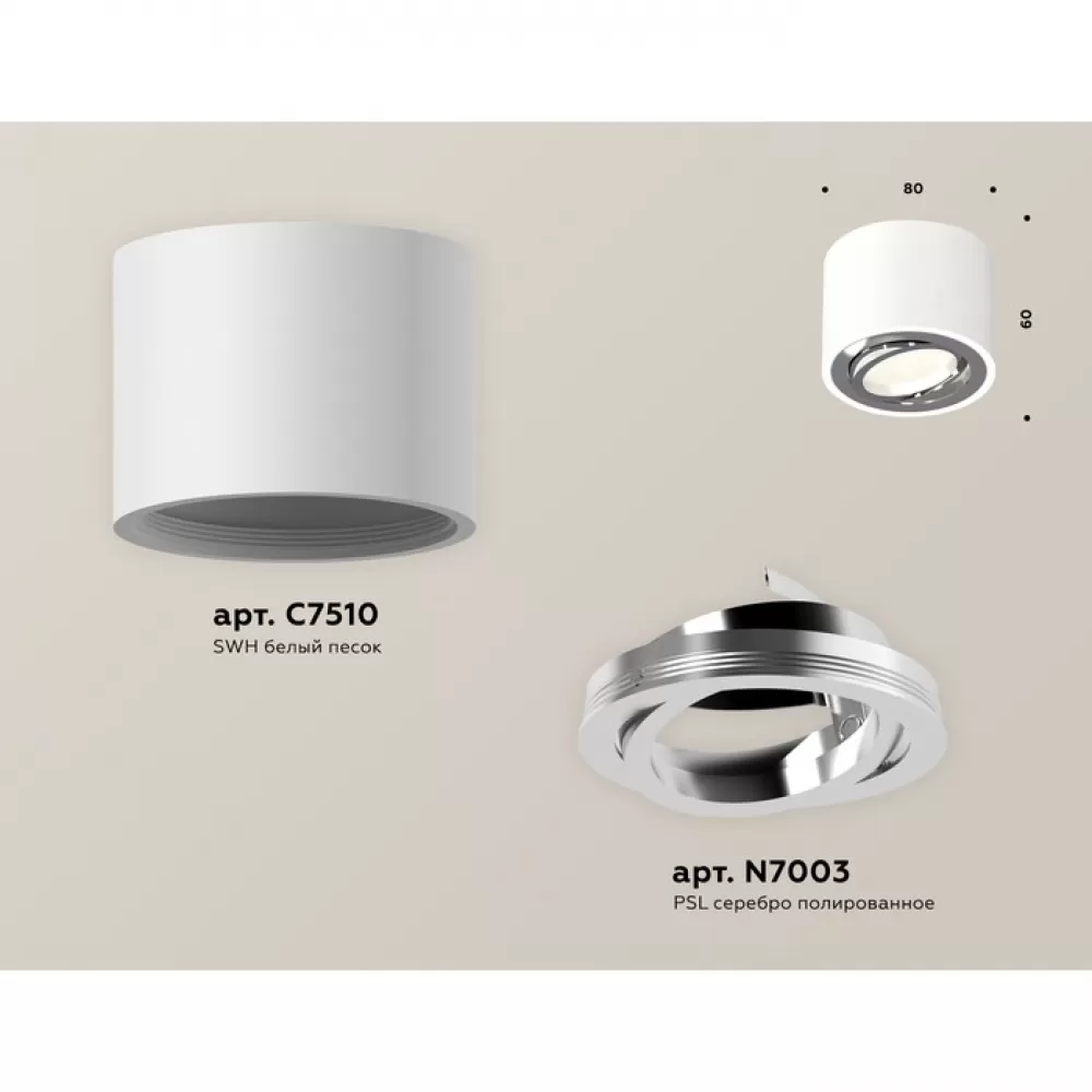 XS7510003 SWH/PSL белый песок/серебро полированное MR16 GU5.3 (C7510, N7003) Комплект накладного поворотного светильника