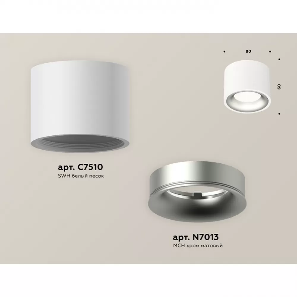 XS7510023 SWH/MCH белый песок/хром матовый MR16 GU5.3 (C7510, N7013) Комплект накладного светильника