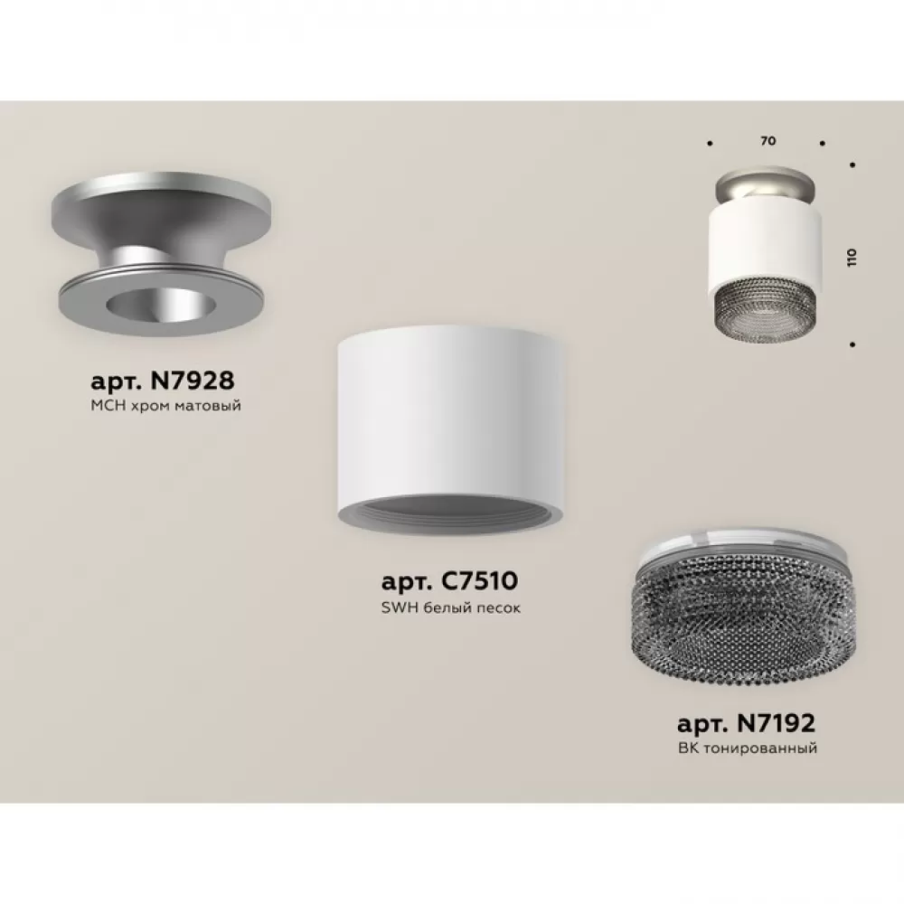 XS7510102 SWH/BK белый песок/тонированный MR16 GU5.3 (N7928, C7510, N7192) Комплект накладного светильника с композитным хрусталем