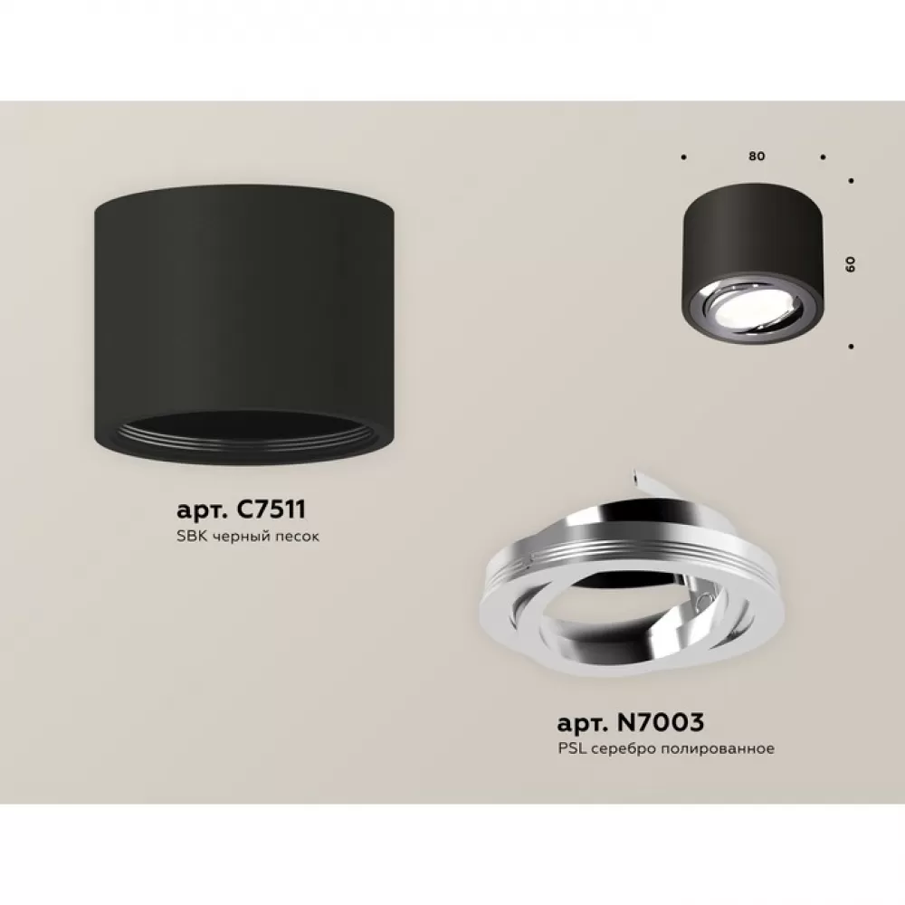 XS7511003 SBK/PSL черный песок/серебро полированное MR16 GU5.3 (C7511, N7003) Комплект накладного поворотного светильника