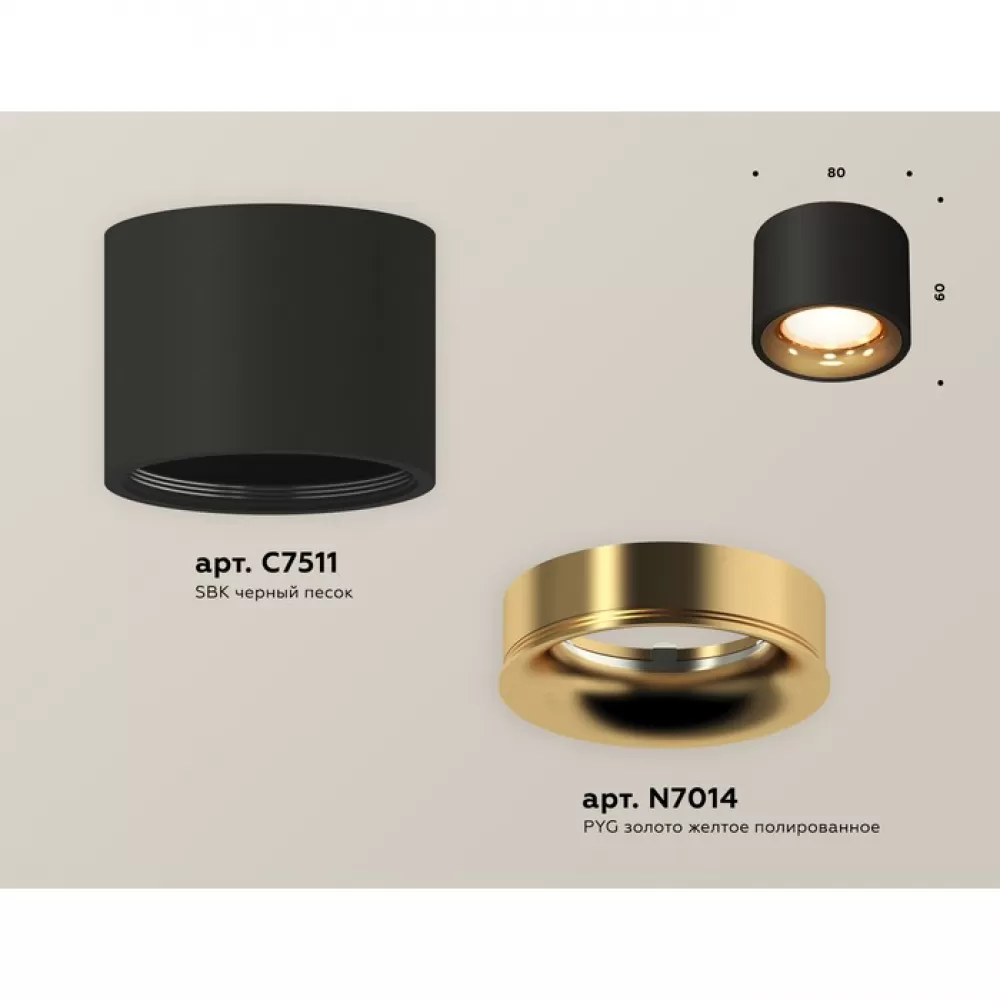 XS7511024 SBK/PYG черный песок/золото желтое полированное MR16 GU5.3 (C7511, N7014) Комплект накладного светильника