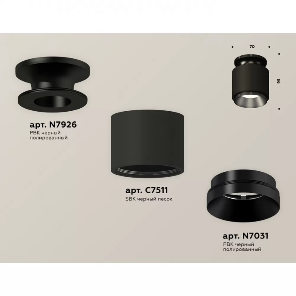 XS7511060 SBK/PBK черный песок/черный полированный MR16 GU5.3 (N7926, C7511, N7031) Комплект накладного светильника