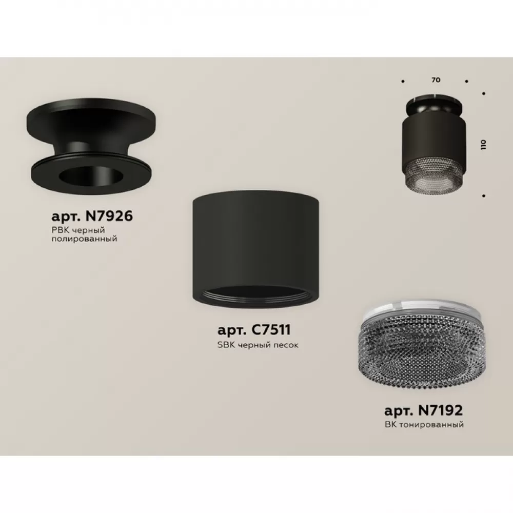 XS7511062 SBK/PBK/BK черный песок/черный полированный/тонированный MR16 GU5.3 (N7926, C7511, N7192) Комплект накладного светильника с композитным хрусталем