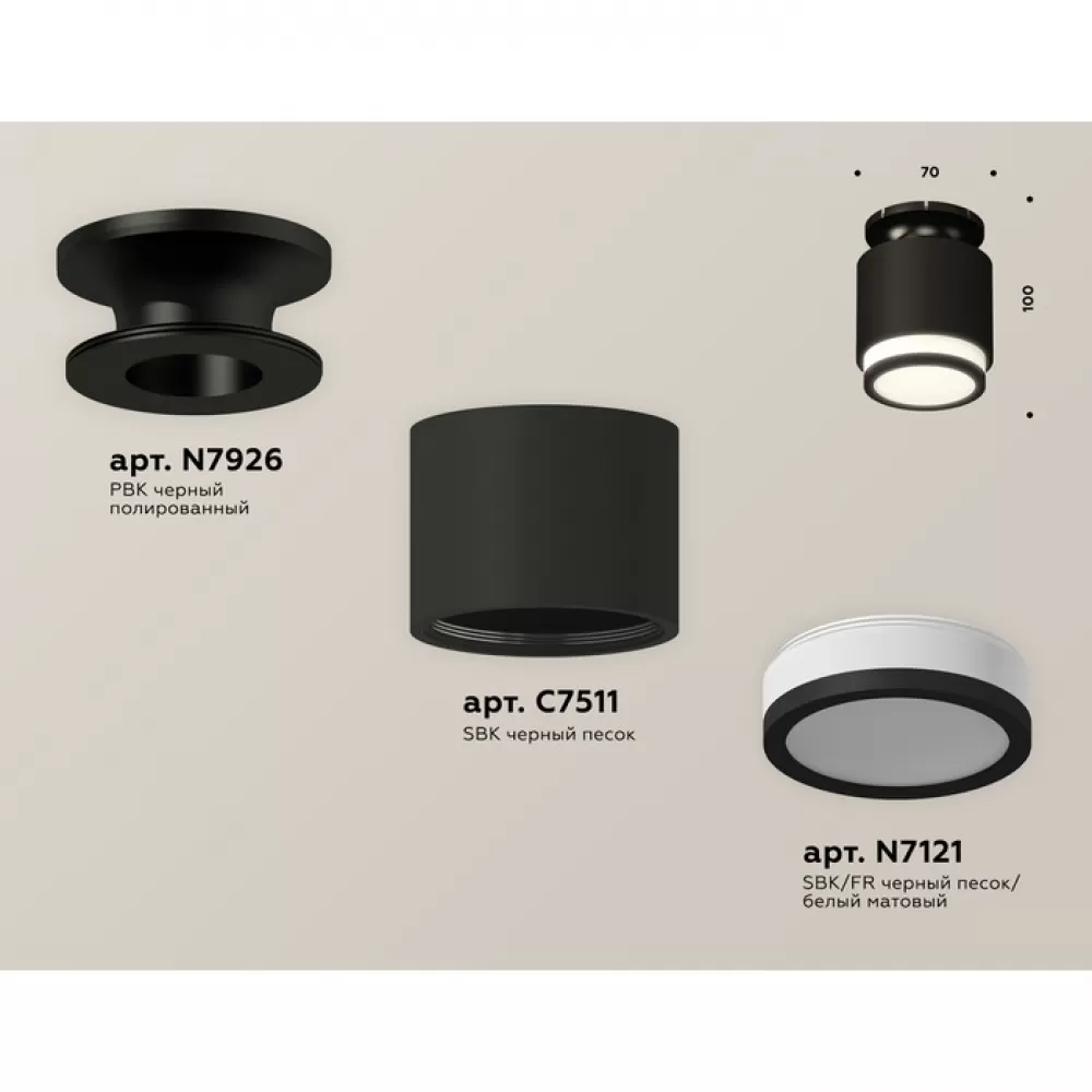 XS7511063 SBK/PBK/FR черный песок/черный полированный/белый матовый MR16 GU5.3 (N7926, C7511, N7121) Комплект накладного светильника с акрилом