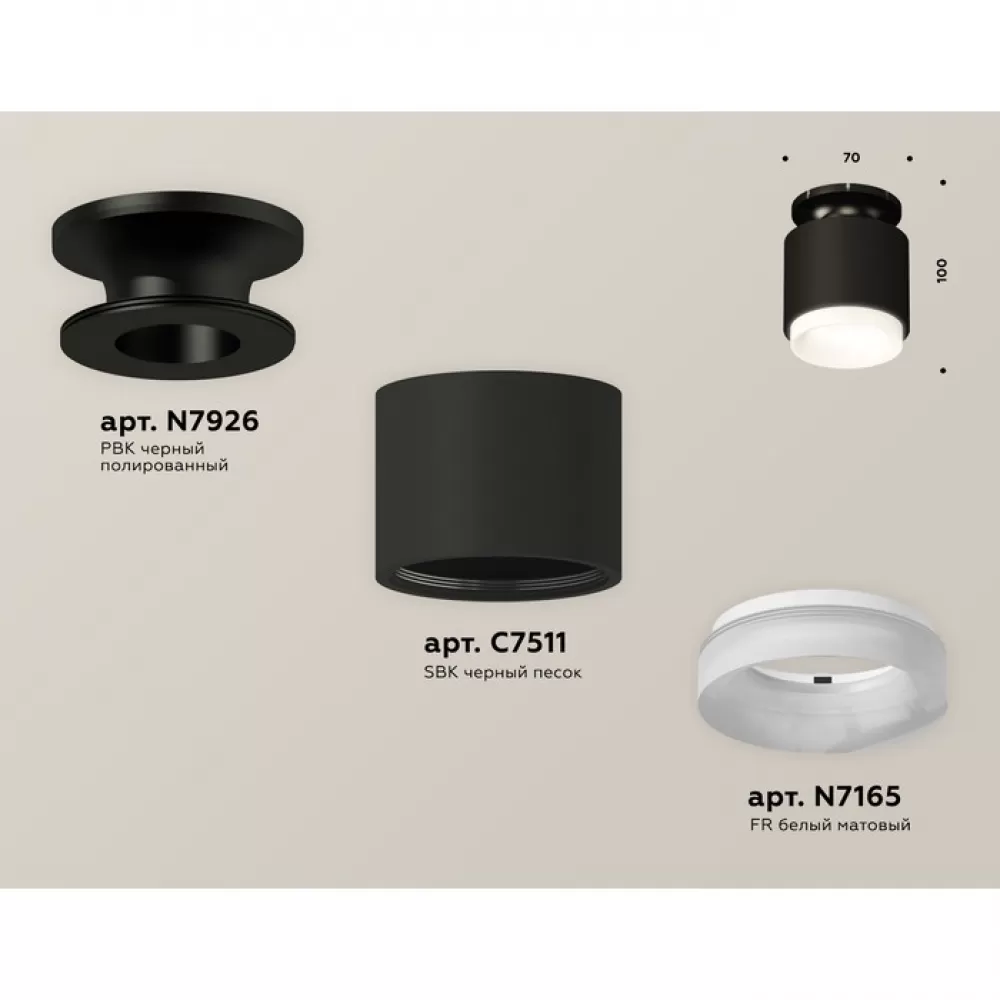 XS7511064 SBK/PBK/FR черный песок/черный полированный/белый матовый MR16 GU5.3 (N7926, C7511, N7165) Комплект накладного светильника с акрилом