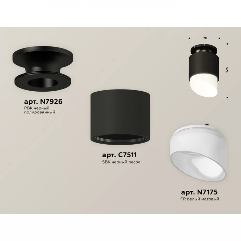 XS7511066 SBK/PBK/FR черный песок/черный полированный/белый матовый MR16 GU5.3 (N7926, C7511, N7175) Комплект накладного светильника с акрилом