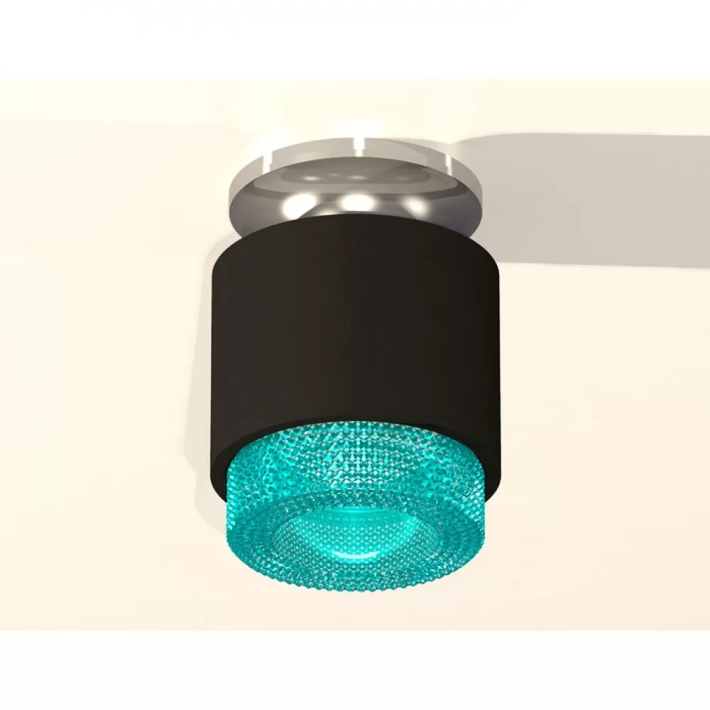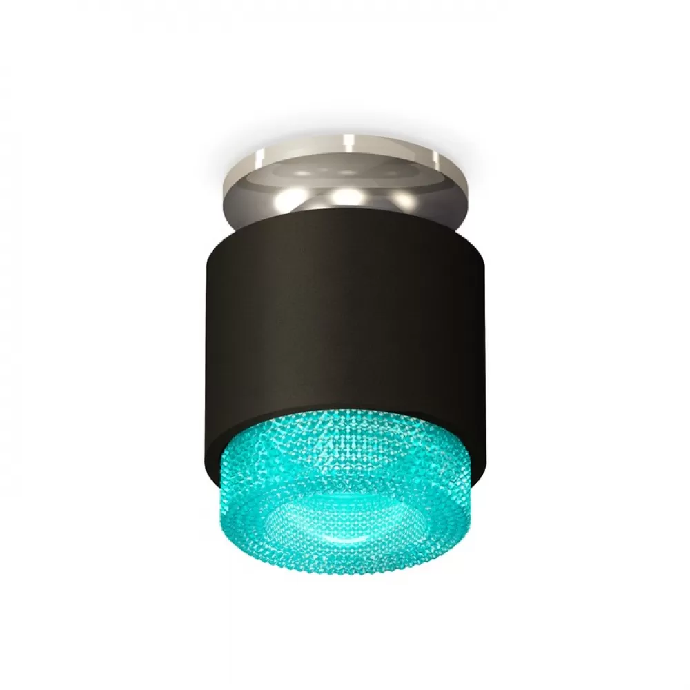 XS7511082 SBK/PSL/BL черный песок/серебро полированное/голубой MR16 GU5.3 (N7927, C7511, N7194) Комплект накладного светильника с композитным хрусталем