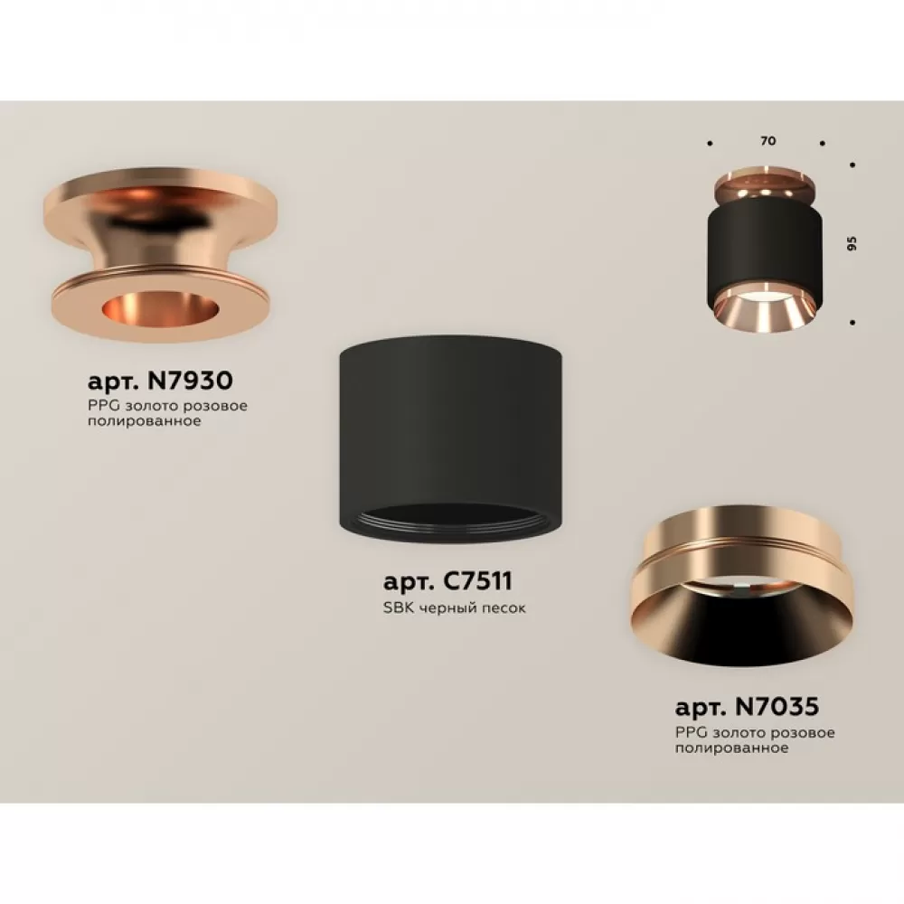 XS7511140 SBK/PPG черный песок/золото розовое полированное MR16 GU5.3 (N7930, C7511, N7035) Комплект накладного светильника