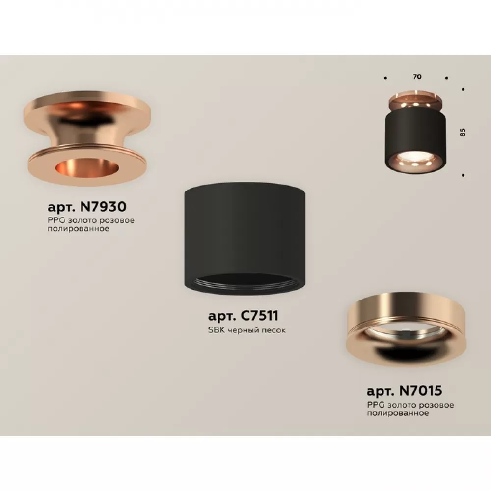 XS7511141 SBK/PPG черный песок/золото розовое полированное MR16 GU5.3 (N7930, C7511, N7015) Комплект накладного светильника