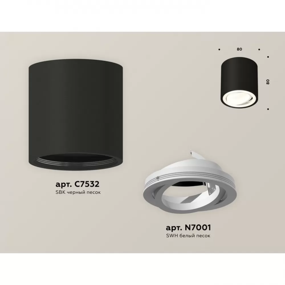 XS7532001 SBK/SWH черный песок/белый песок MR16 GU5.3 (C7532, N7001) Комплект накладного поворотного светильника