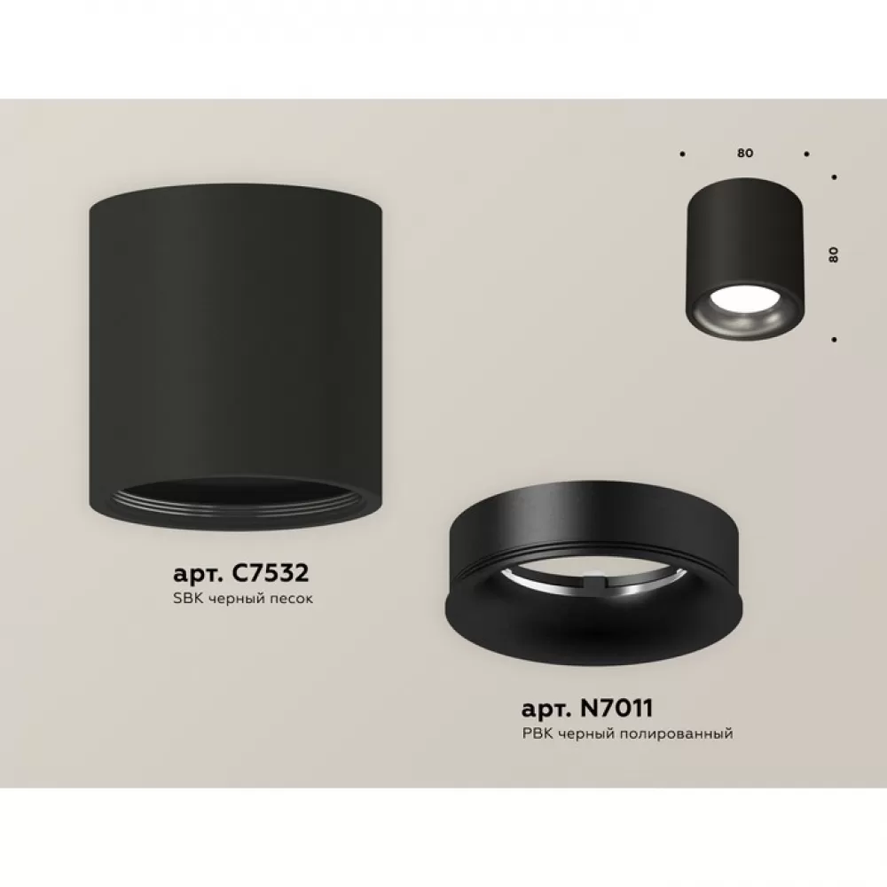 XS7532021 SBK/PBK черный песок/черный полированный MR16 GU5.3 (C7532, N7011) Комплект накладного светильника