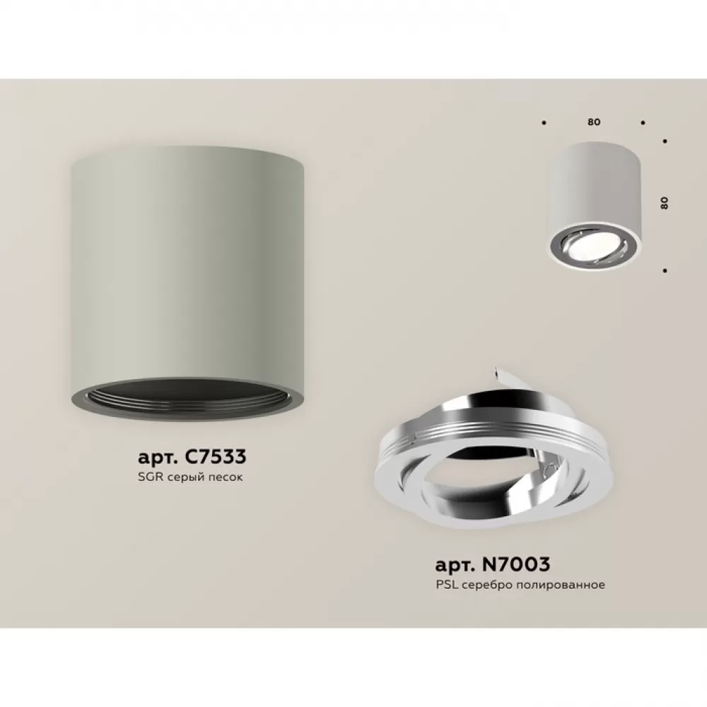 XS7533003 SGR/PSL серый песок/серебро полированное MR16 GU5.3 (C7533, N7003) Комплект накладного поворотного светильника