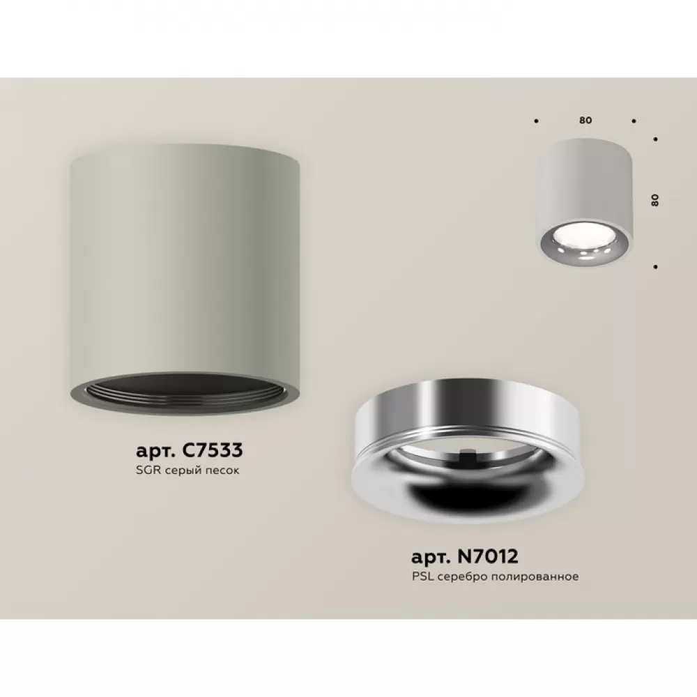 XS7533022 SGR/PSL серый песок/серебро полированное MR16 GU5.3 (C7533, N7012) Комплект накладного светильника