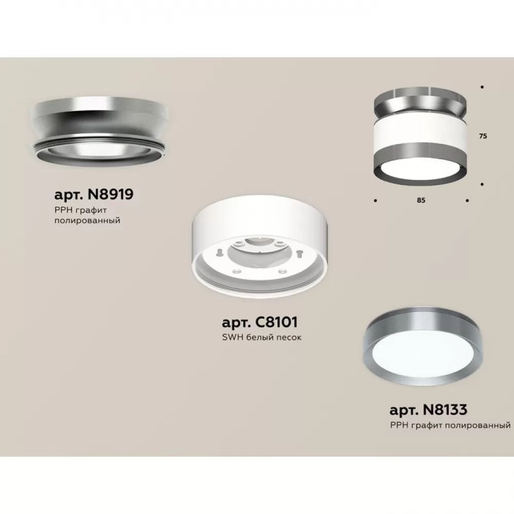 XS8101070 SWH/PPH белый песок/графит полированный GX53 (N8919, C8101, N8133) Комплект накладного светильника