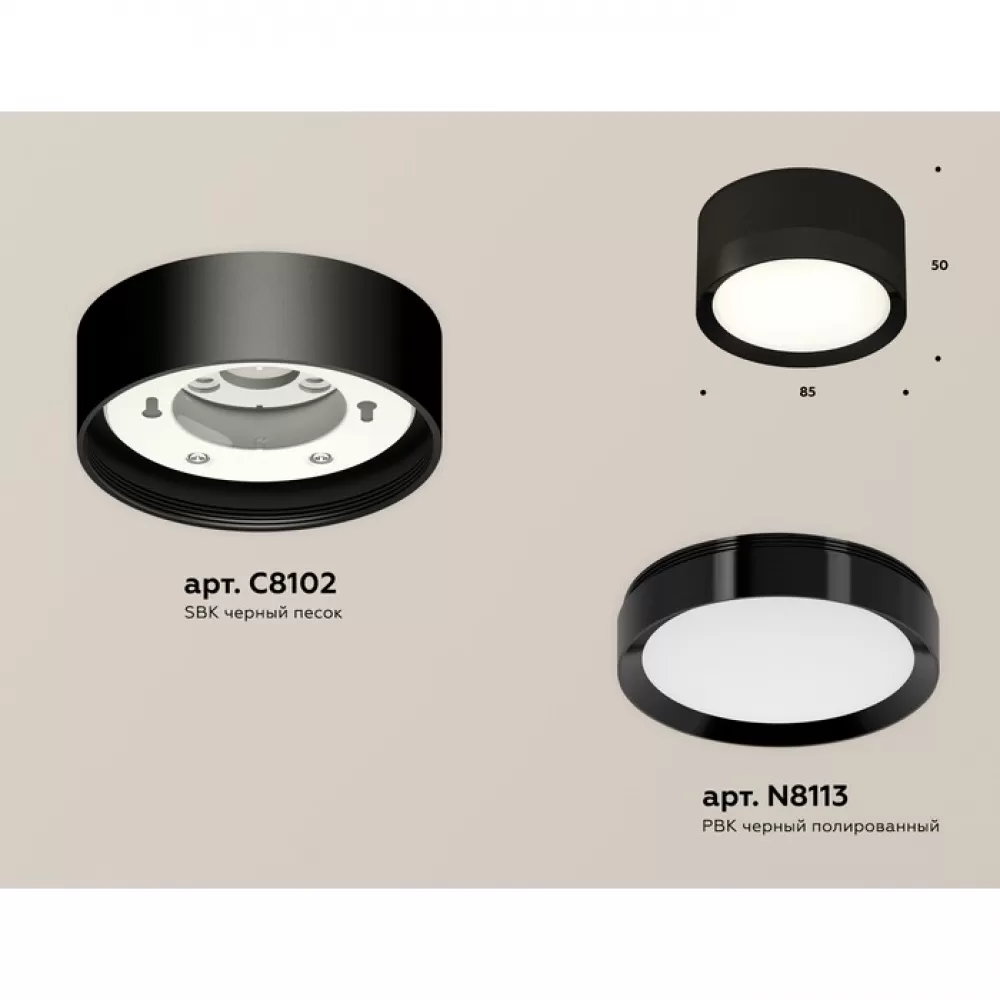 XS8102002 SBK/PBK черный песок/черный полированный GX53 (C8102, N8113) Комплект накладного светильника