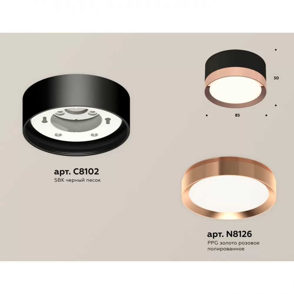 XS8102005 SBK/PPG черный песок/золото розовое полированное GX53 (C8102, N8126) Комплект накладного светильника