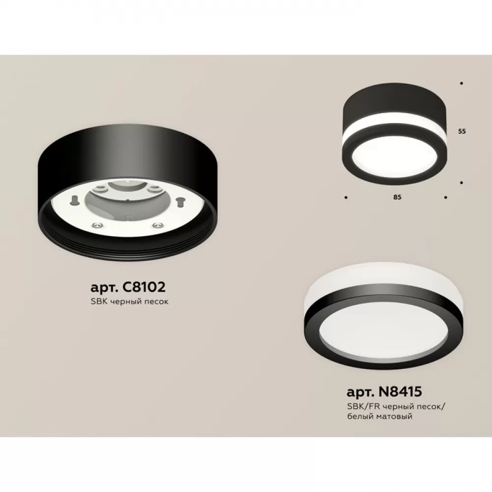 XS8102017 SBK/FR черный песок/белый матовый GX53 (C8102, N8415) Комплект накладного светильника с акрилом