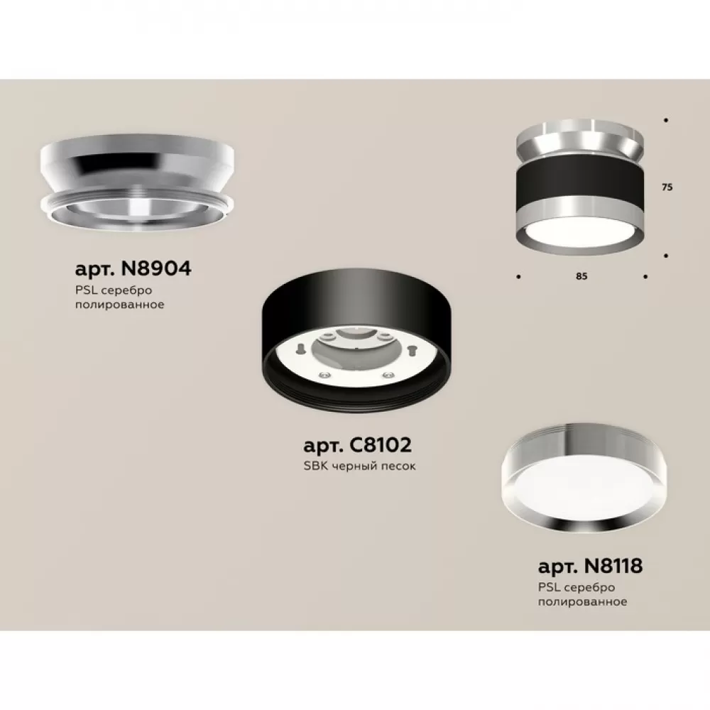XS8102055 SBK/PSL черный песок/серебро полированное GX53 (N8904, C8102, N8118) Комплект накладного светильника