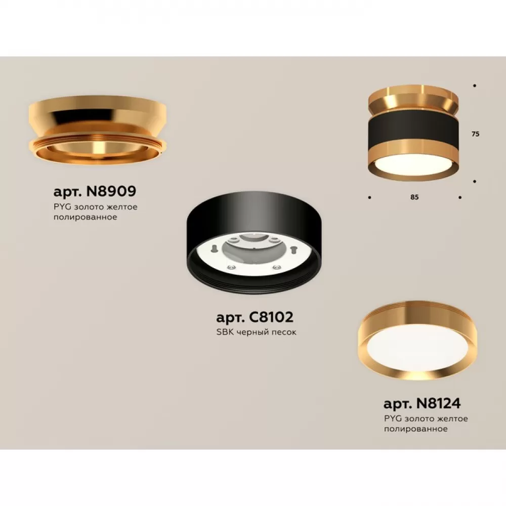 XS8102060 SBK/PYG черный песок/золото желтое полированное GX53 (N8909, C8102, N8124) Комплект накладного светильника