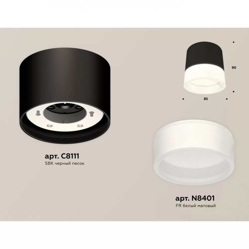 XS8111001 SBK/FR черный песок/белый матовый GX53 (C8111, N8401) Комплект накладного светильника с акрилом