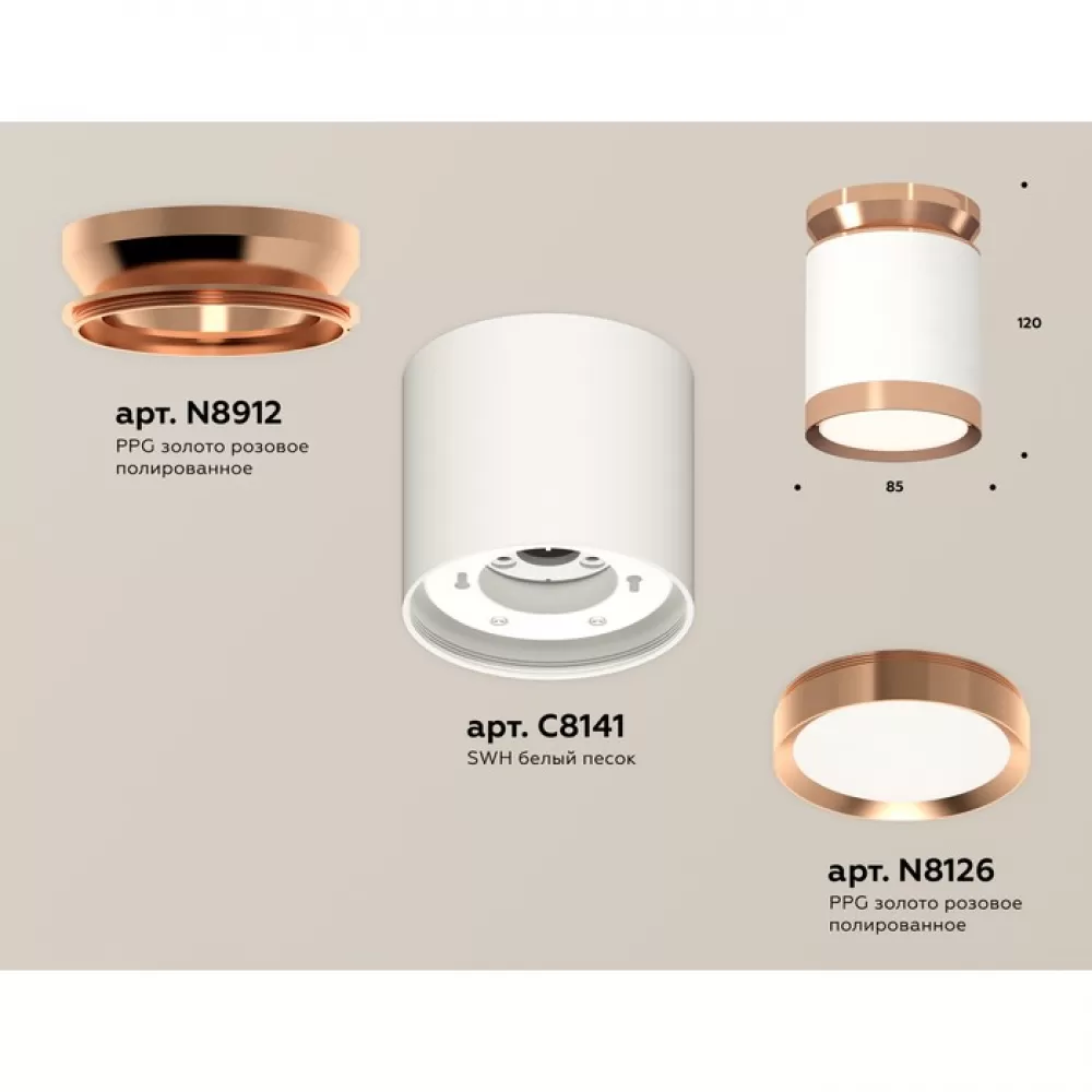 XS8141035 SWH/PPG белый песок песок/золото розовое полированное GX53 (N8912, C8141, N8126) Комплект накладного светильника