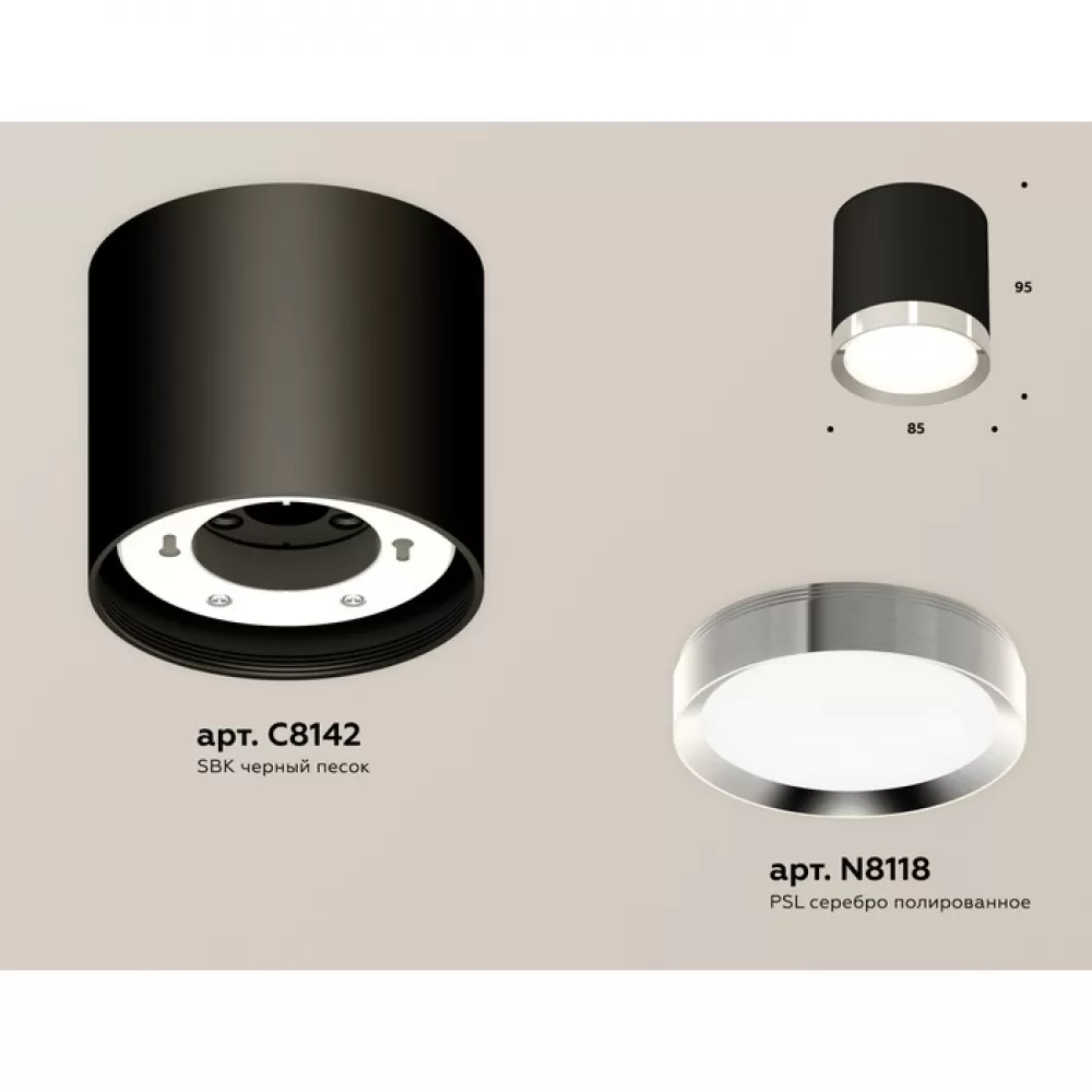 XS8142003 SBK/PSL черный песок/серебро полированное GX53 (C8142, N8118) Комплект накладного светильника
