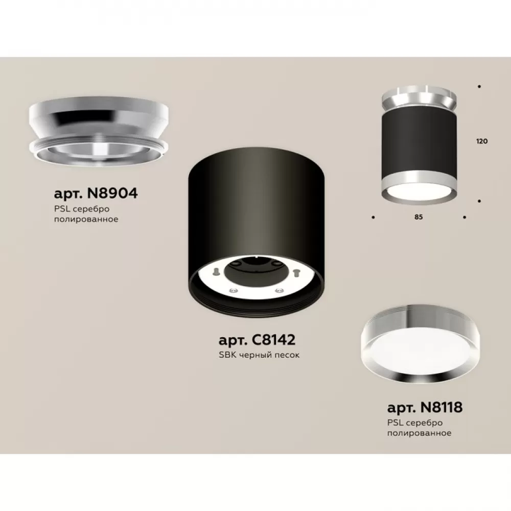 XS8142025 SBK/PSL черный песок/серебро полированное GX53 (N8904, C8142, N8118) Комплект накладного светильника