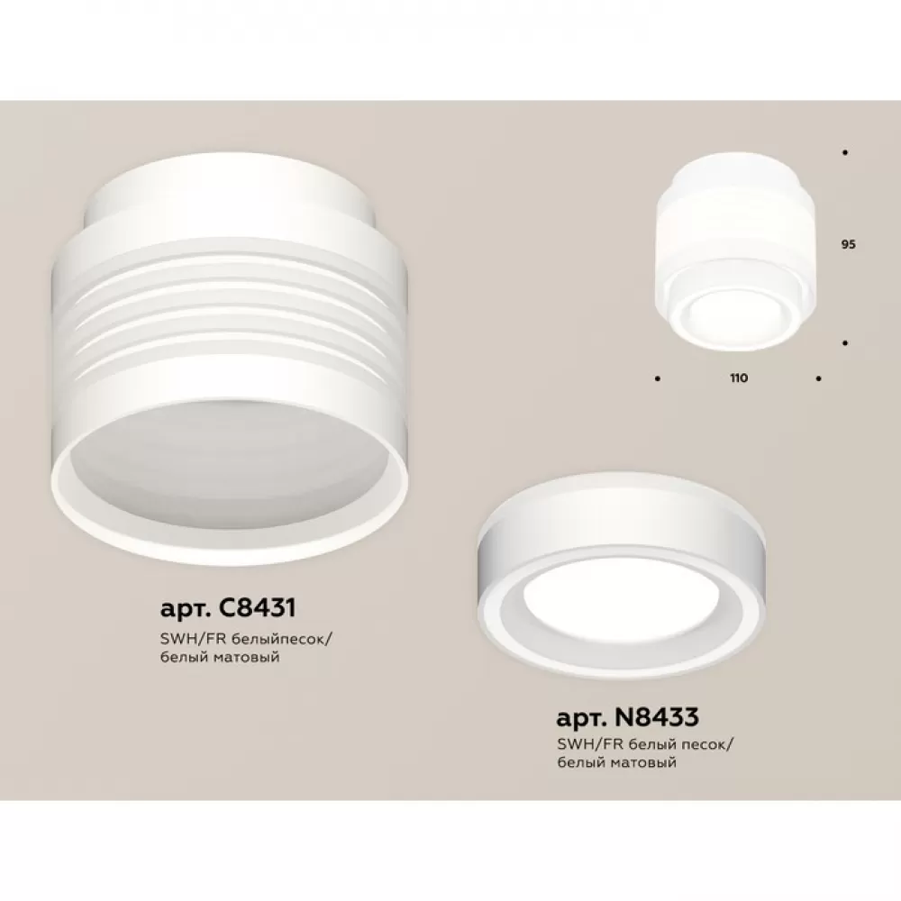 XS8431002 SWH/FR белый песок/белый матовый GX53 (C8431, N8433) Комплект накладного светильника с акрилом