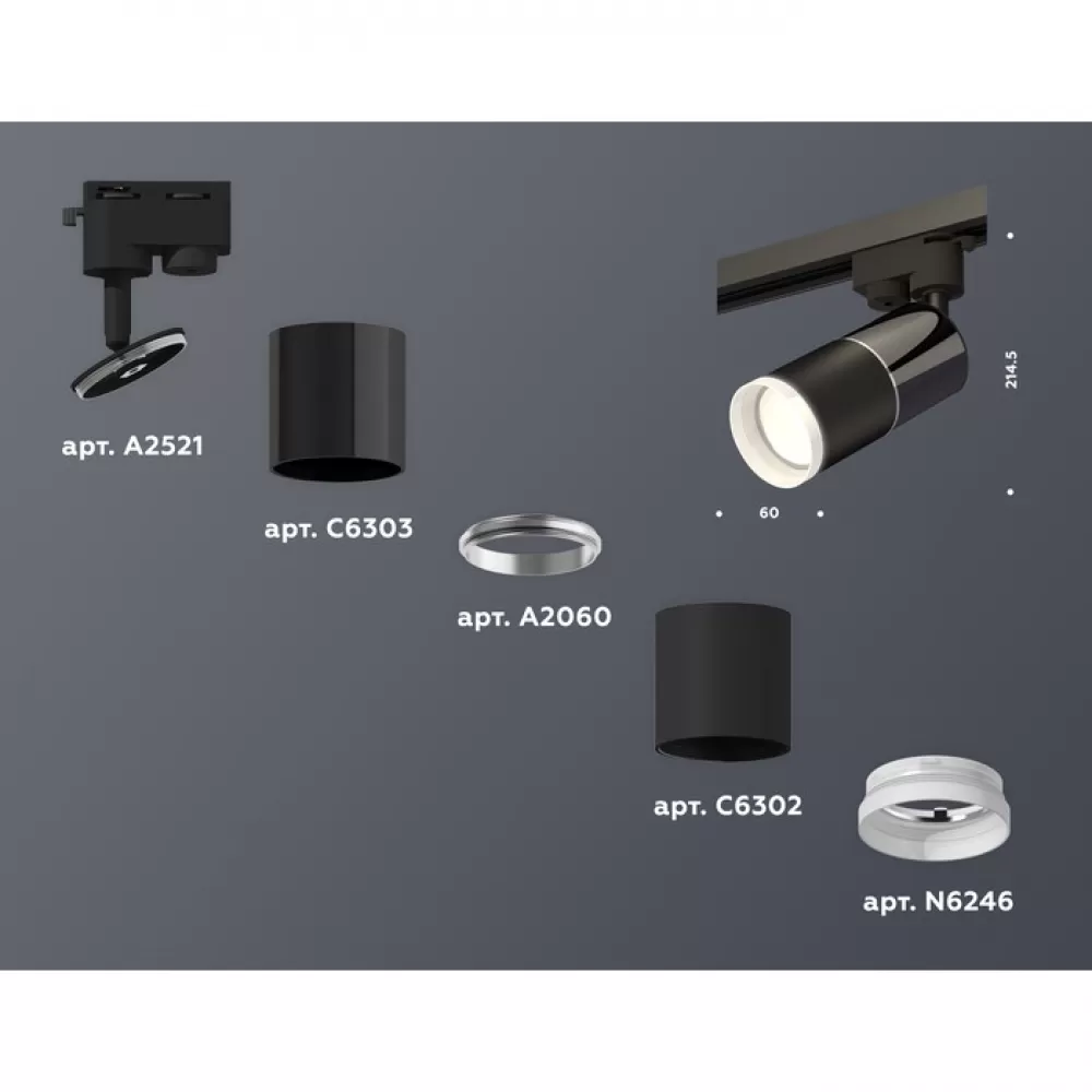 XT6302041 SBK/DCH/FR черный песок/черный хром/белый матовый MR16 GU5.3 Комплект трекового однофазного светильника с акрилом