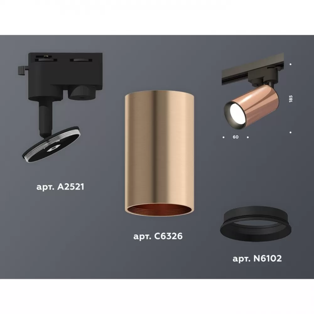 XT6326010 PPG/SBK золото розовое полированное/черный песок MR16 GU5.3 (A2521, C6326, N6102) Комплект трекового однофазного светильника