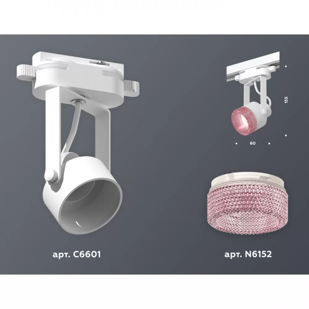 XT6601062 WH/PI белый/розовый MR16 GU10 (C6601, N6152) Комплект трекового однофазного светильника с композитным хрусталем