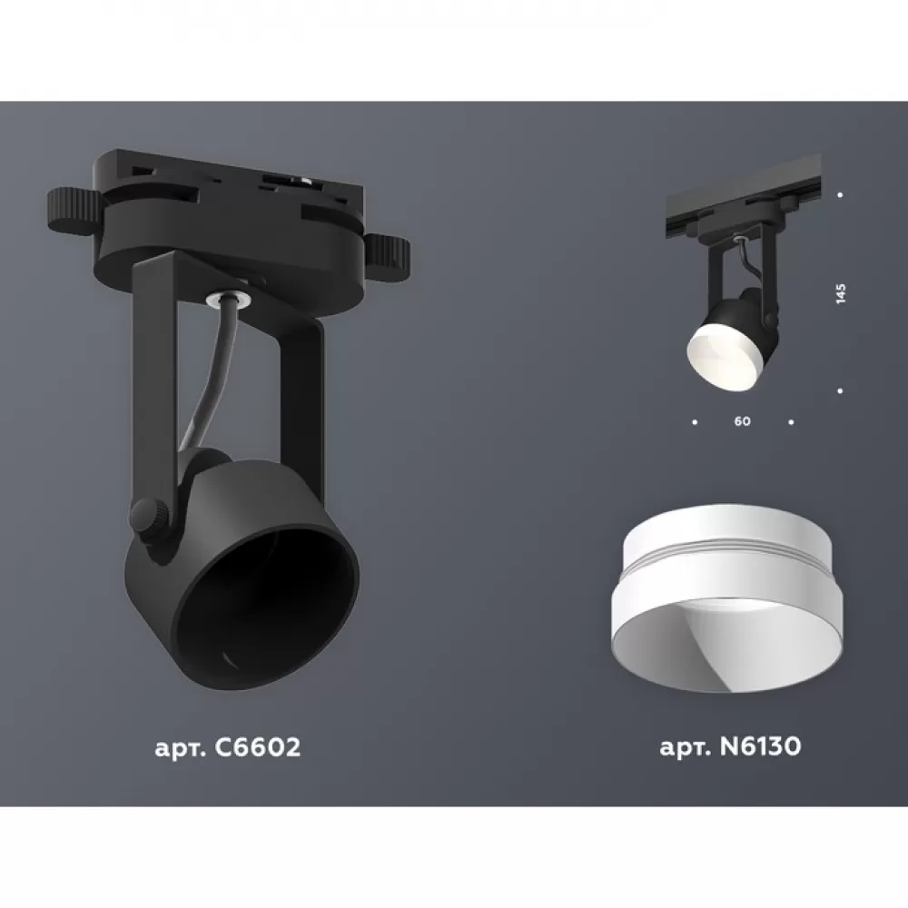 XT6602040 PBK/SWH черный полированный/белый песок MR16 GU10 (C6602, N6130) Комплект трекового однофазного светильника
