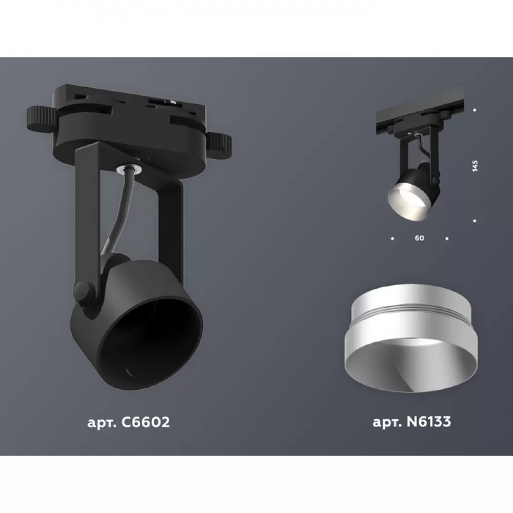 XT6602043 PBK/MCH черный полированный/хром матовый MR16 GU10 (C6602, N6133) Комплект трекового однофазного светильника